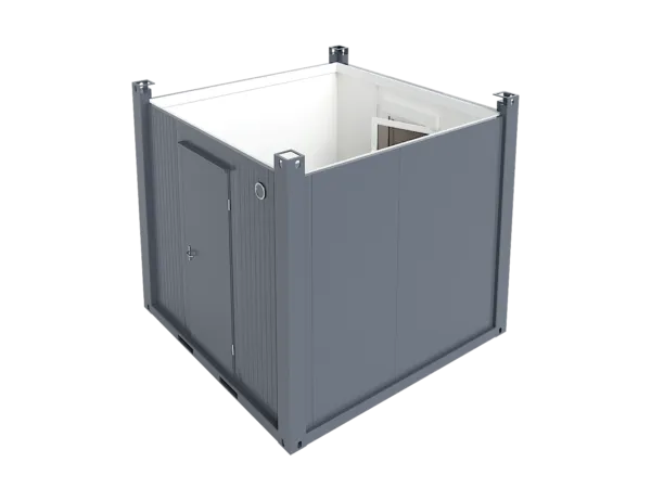 The 10′ Office Container can be equipped with several accessories and the desired layout. Popular accessories include air source heat pumps, computer sockets, heat recovery ventilation machines, and additional windows. The window of the container has standard aluminum roller shutters, meaning that you can safely close up for the night, for example. Handling with crane from the corner pieces or forklift pockets.