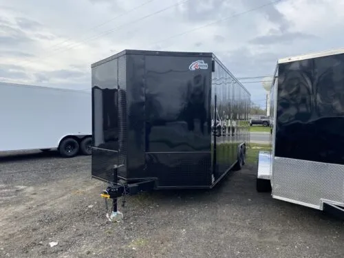Features: 84″ Interior Height – V Nose – (2) 5200Lb Axles – 6 Inch Main Frame – 3/4 Inch Plywood Floor – 3/8 Inch Plywood Side Walls – Marine Base Undercoating – Blackout Package – 225 Radial Tires – Electric Brakes – Battery with Breakaway – 12 Volt Dome Light with Switch – LED Exterior Lights – Triple Tube Tongue – No Show Beavertail or Dovetail – (4) Floor Mount D-Rings – 16 On Center Floor Members – 16 On Center Wall Members – 24 On Center Roof Bows – Tag Holder with Light – (4) Floor Mount D-Rings