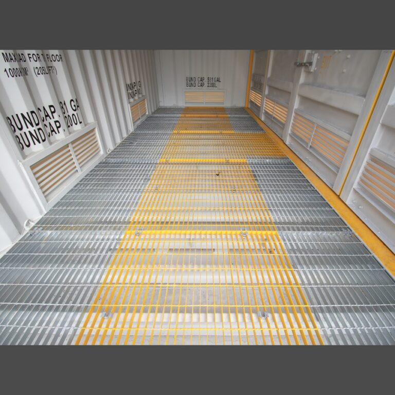 - Safety Features: Grated spill tray with 1,350L capacity, four 24” x 24” louvers for ventilation