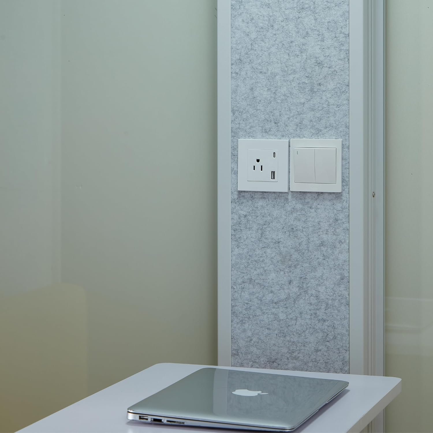 - 【Fully Equipped for Functionality】Power through tasks with integrated USB and power sockets, while keeping cables organized through the passthrough. The sleek white exterior and gray sound-absorbing interior blend effortlessly with your office decor. Features include 1 five-hole power socket/USB port, 1 two-position single-control switch, and 1 round wire management hole for added convenience.